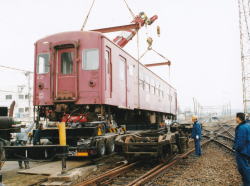 本車両はもともと丸1両あったのですが、移設前の時点で既に腐食が激しかったため、車掌室側の半分のみを移設・保管しています。 |