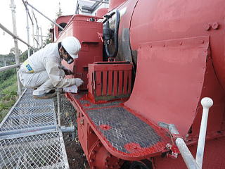 ローラーを使い、丁寧に手作業で錆止めを塗布。 |