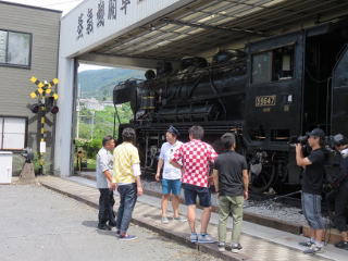 突然、店の電話が鳴って「今から取材が入るよ!」との一言。 バタバタと準備しているうちに取材陣一行を乗せた国鉄バスが帰ってきました。 |